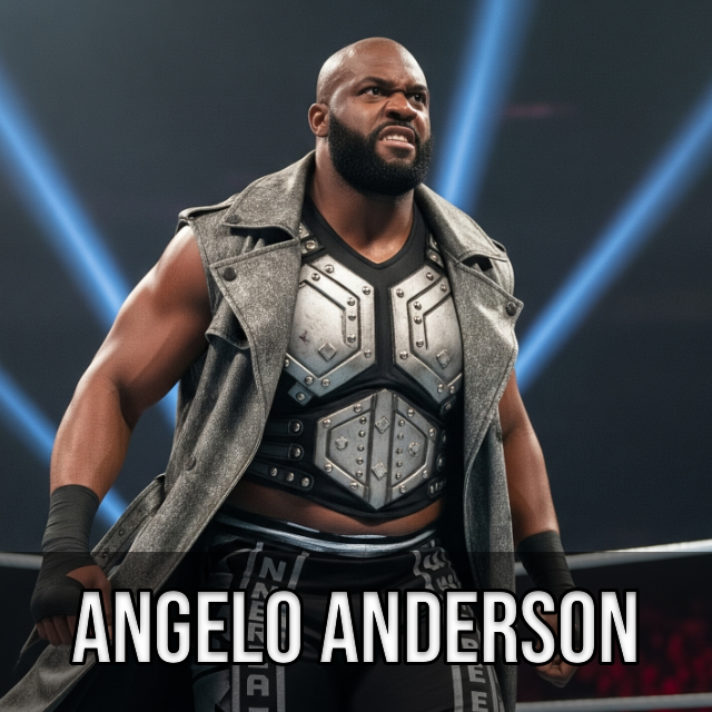 The Stratford Arena is bathed in a stark, cold light as Angelo Anderson’s ominous theme, “God of the Underground” by Fever 333, hits the sound system. The crowd immediately erupts into a chorus of boos. The stage is filled with smoke as a long, sleeveless trench coat with a metal-plated chest piece slowly emerges. Angelo Anderson, the DW Heavyweight Champion, walks with a deliberate, intimidating swagger, the title belt slung over his shoulder. His shaved head, short beard, and intense, calculating eyes are visible as he makes his way down the ramp, unflinching in the face of the hostile crowd. He steps into the ring, takes the microphone from the ring announcer, and holds it up, the boos from the crowd momentarily overpowering the music.