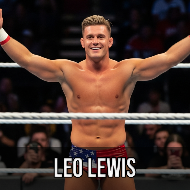 As Emily Shaw poses in the center of the ring, the crowd erupts in cheers as the upbeat pop-rock anthem “A Star is Born” hits the sound system. ‘The American Ace’ Leo Lewis sprints down the ramp, high-fiving the fans at ringside. He’s wearing red and white trunks with a star-spangled banner on the back, and he has a huge smile on his face.