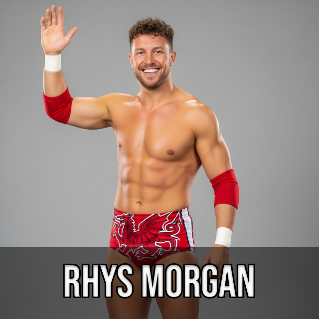 The arena is buzzing with excitement as the first notes of a high-energy Celtic rock track, “A Hero’s Rise,” fill the Stratford Arena. A huge pop erupts from the crowd as ‘The Welsh Dragon’ Rhys Morgan makes his way to the ring. He’s wearing red and white trunks with a dragon emblazoned on the back. He has a huge smile on his face, waving to the crowd, and high-fiving the fans at ringside.