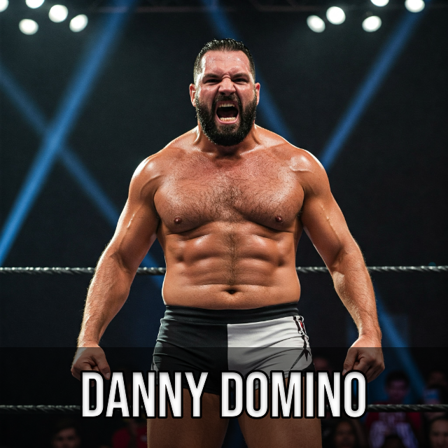 - Shot 2 (The Present – Heels): The video snaps to color, showing the top heels. Anthony Moretti lands The HitmanDouble Knee Facebreaker with an arrogant sneer. Danny Domino connects with a brutal Domino Effect Uranage, snarling at the camera. Alex Sterling hits his Box Office Smash jumping neckbreaker and strikes an overly dramatic pose.