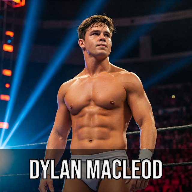 DYLAN MACLEOD rushes to the ring, pumping his fists, a huge smile on his face. He’s dressed in electric blue and white gear, radiating energy and athleticism. MacLeod is a high-flyer and a fan favorite, bouncing off the ropes and waving to all sides of the arena. He gets a loud, enthusiastic reception.