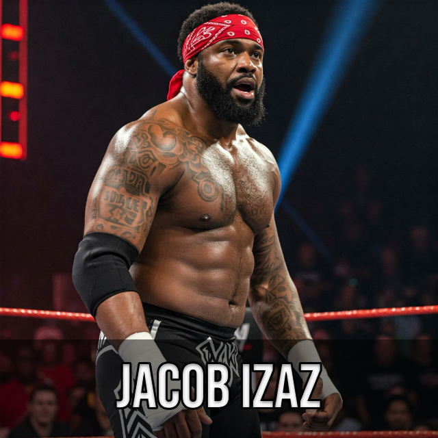 JACOB IZAZ emerges, his face pale and intense, his body lean but visibly powerful. He exudes a calm, almost cult-like menace. He is flanked by a smirking JAY ADDER, fresh off his decisive victory. Izaz steps into the ring and slowly raises his arms, soaking up the aggressive boos from the crowd. Adder takes his place at ringside, watching like a predator.