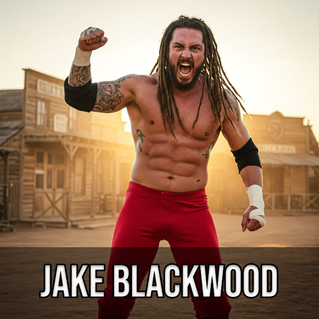 RING ANNOUNCER (V.O.): And his opponent! From Las Vegas, Nevada, weighing in at 258 pounds, he is ‘THE LONE WOLF’—JAKE BLACKWOOD!